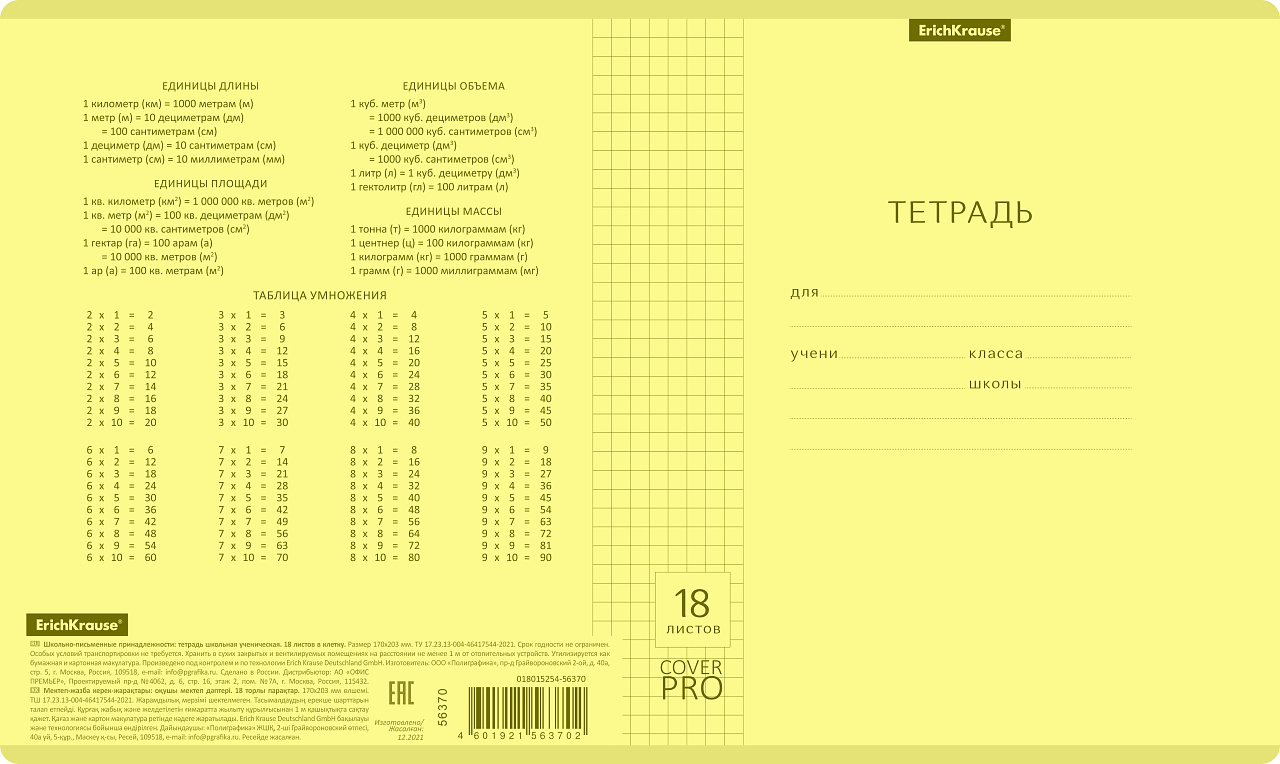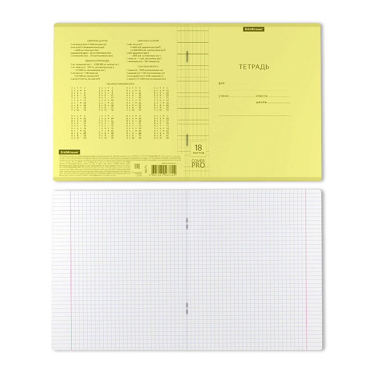 Тетрадь 18 листов в клетку "ЖЕЛТАЯ" обложка из мелованного картона(200 г/м²) блок офсет 60 г/м², 92%ТМ: 5 только на пять